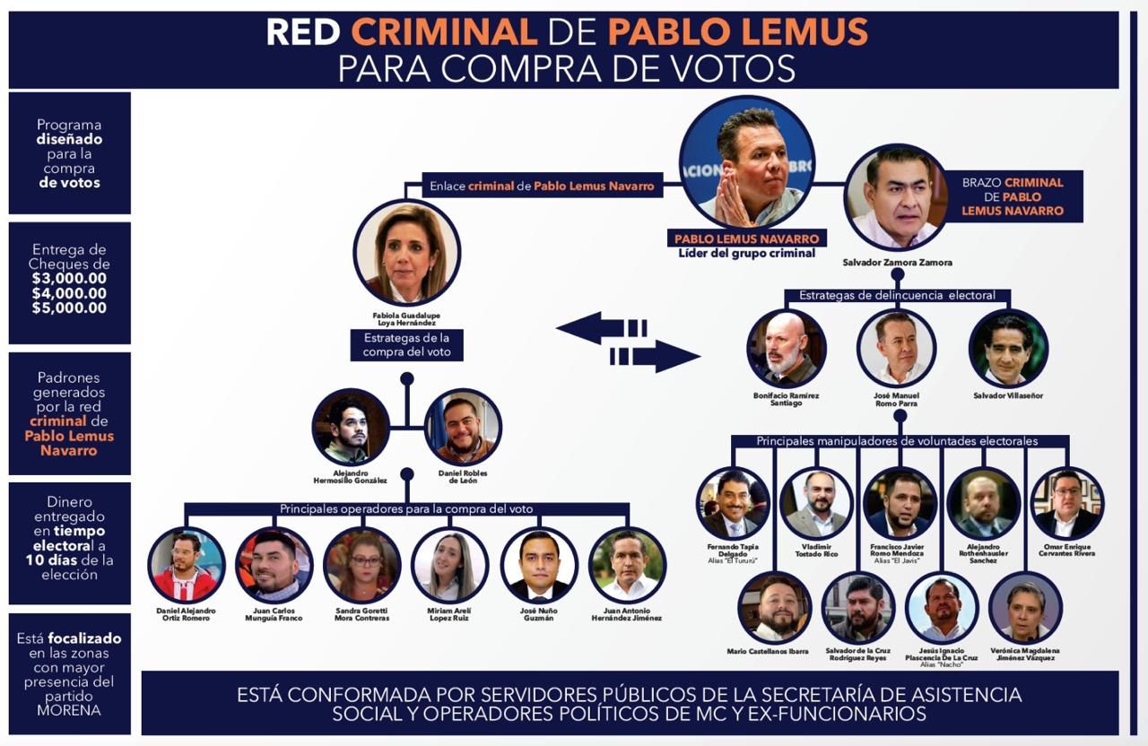 Este ilícito, señalaron, es una muestra de que el Gobierno de Jalisco tiene metidas las manos en el proceso electoral, con el fin de favorecer a los candidatos del partido naranja. Asimismo, denunciaron que es una muestra inequívoca de que quieren ganar a través de delitos y comprar la voluntad popular.