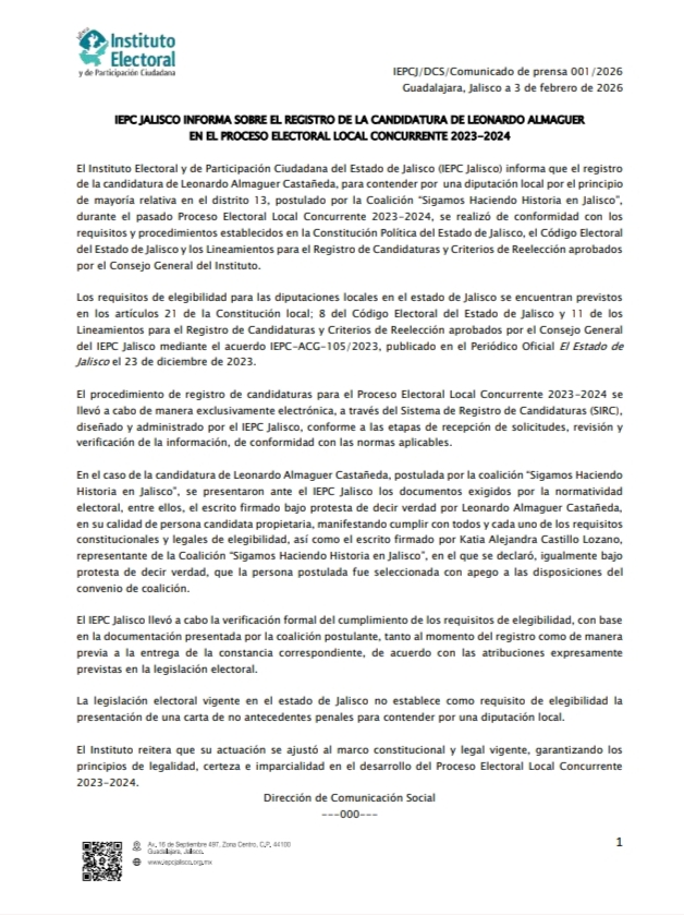 Martes 03 de febrero de 2026.- En medio de la polémica, por la ventilación pública en el diario Mural, respecto a que el diputado local del PT por Jalisco, Leonardo Almaguer estuvo acusado y encarcelado entre 2004 y 2007 de delincuencia organizada por robo a camiones cerveceros, por lo cual estuvo detenido, el presidente del Partido del Trabajo, José Luis Sánchez, ofreció una rueda de prensa donde reconoce que el legislador sí delinquió, pero que ya está libre de antecedentes penales y que todo fue legal ante el IEPC cuando se registró para candidato.