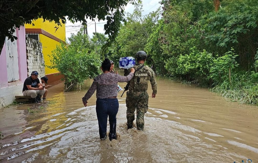La presidenta de México informa a través de sus redes sociales que cientos de elementos de la Defensa Nacional, La Marina, Comunicaciones y Transportes, Conagua y otras instituciones trabajan para atender a las poblaciones afectadas en esos estados.