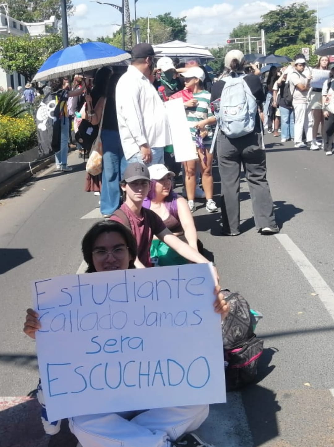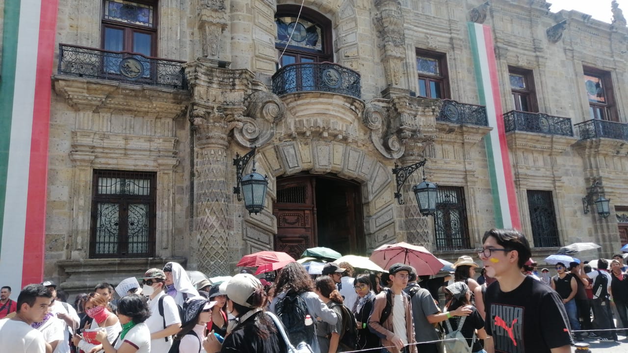 En la movilización, que concluyó frente a las puertas de Palacio de Gobierno, reclamaron llevar a cabo una reforma a la ley orgánica de la universidad y ahí, en la sede de la representación del Poder Ejecutivo, entregaron su pliego petitorio a fin de que el gobernador de Jalisco, Pablo Lemus y que los representantes del Poder Legislativo conozcan de esa propuesta.